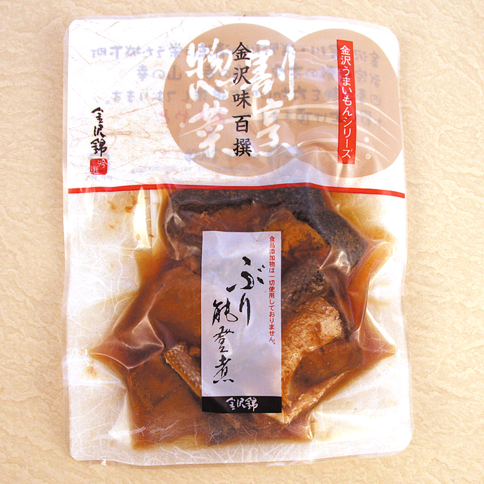 地元石川県や長崎県産天然ぶりを食べやすい大きさにキューブカットし、丸大豆しょうゆと麦芽水あめをうまく絡ませて、能登の魚醤油いしるを隠し味に、じっくり丁寧に炊き上げました。北陸のお正月には、欠かせない一品です。